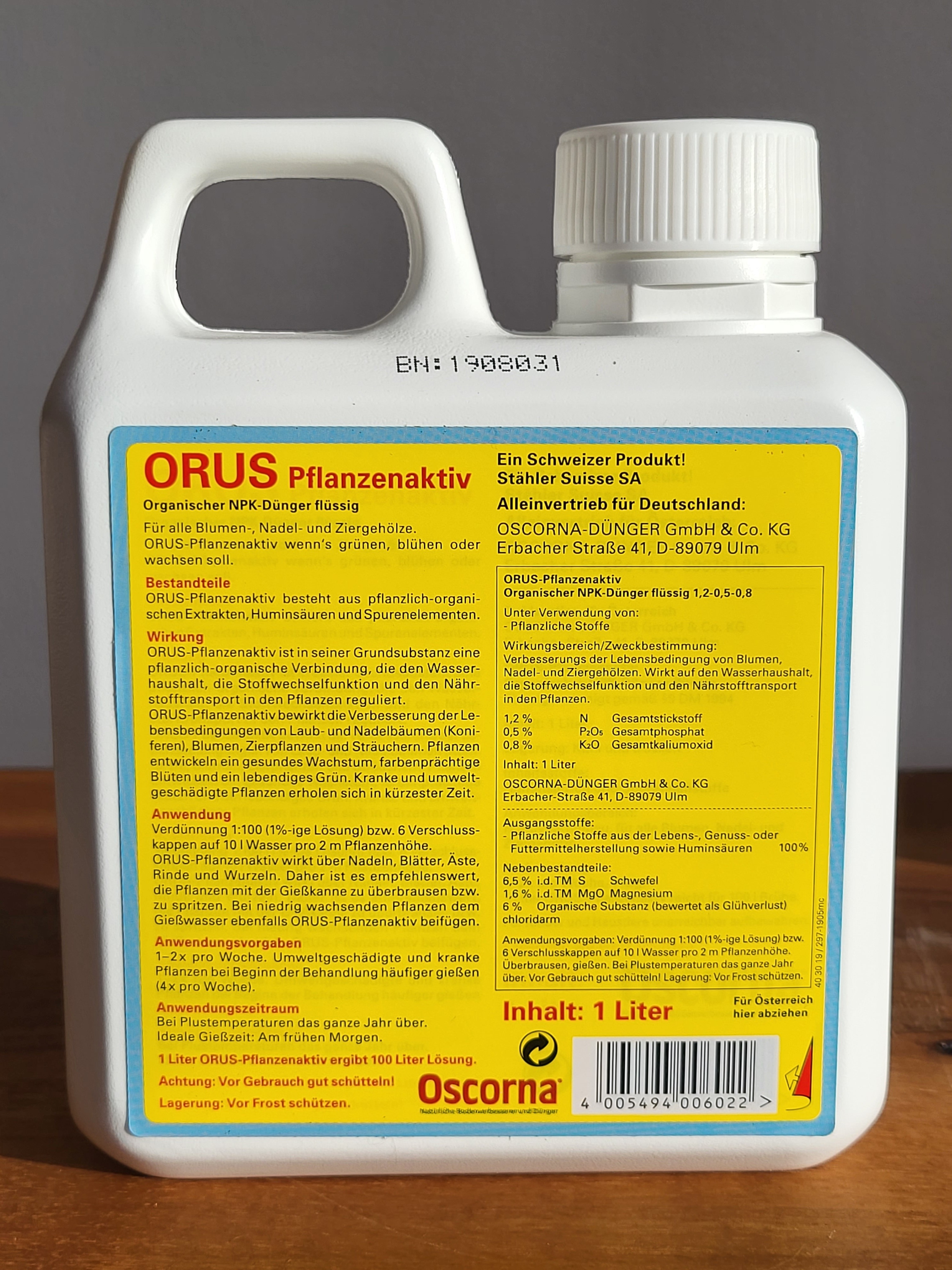 ORUS Pflanzenaktiv ist in der Grundsubstanz eine pflanzlich organische Verbindung, die den Wasserhaushalt, die Stoffwechselfunktion und den Nährstofftransport in der Pflanze reguliert. Pflanzen entwickeln ein gesundes Wachstum, farbenprächtige Blüten und ein lebendiges Grün. Kranke und umweltgeschädigte Pflanzen erholen sich in kürzester Zeit.